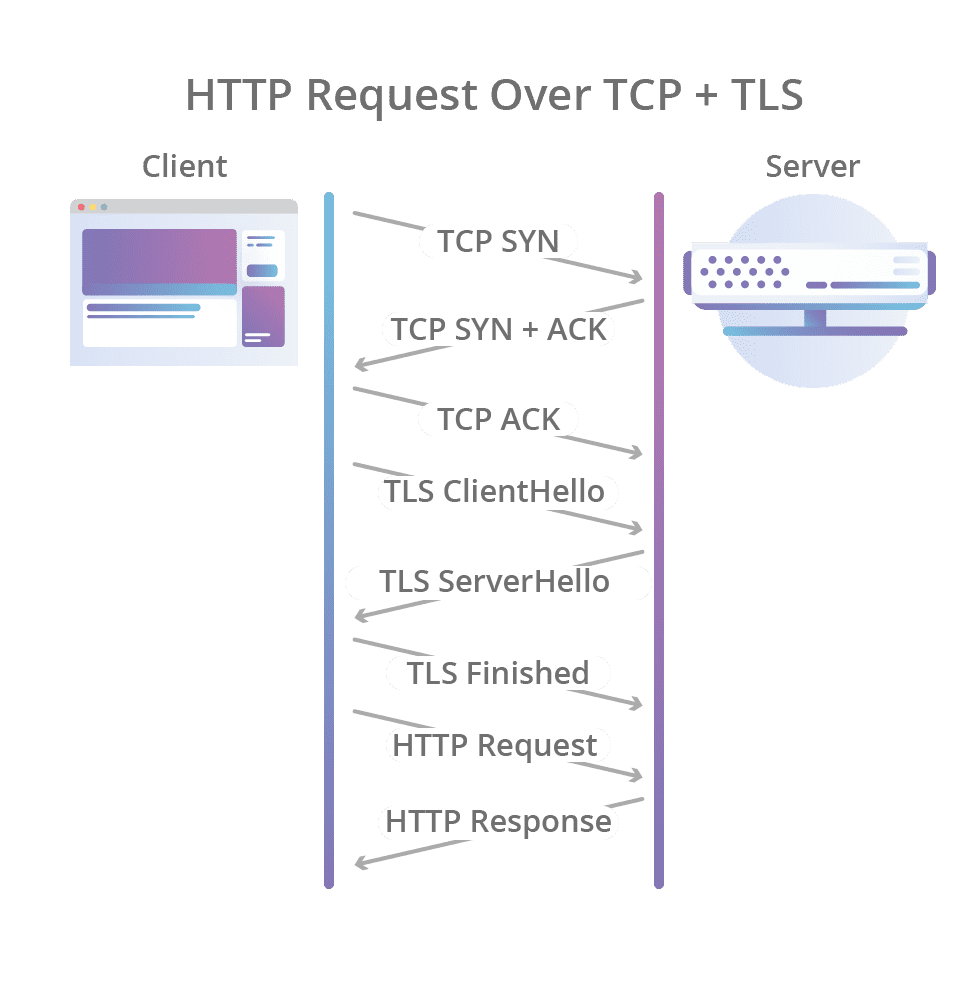 - TCP + TLS 같은 경우 신뢰성있는 연결과 암호화에 필요한 모든 정보를 교환하고 유효성 검사를 한 후에 데이터 교환