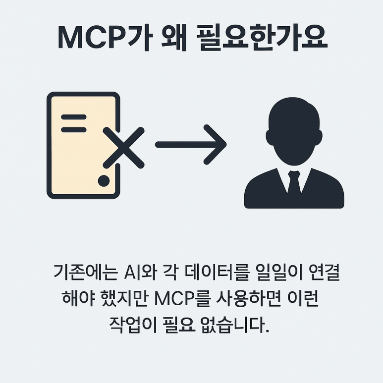 이런 환경에서 주목받는 것이 바로 MCP(Model Context Protocol)입니다.
