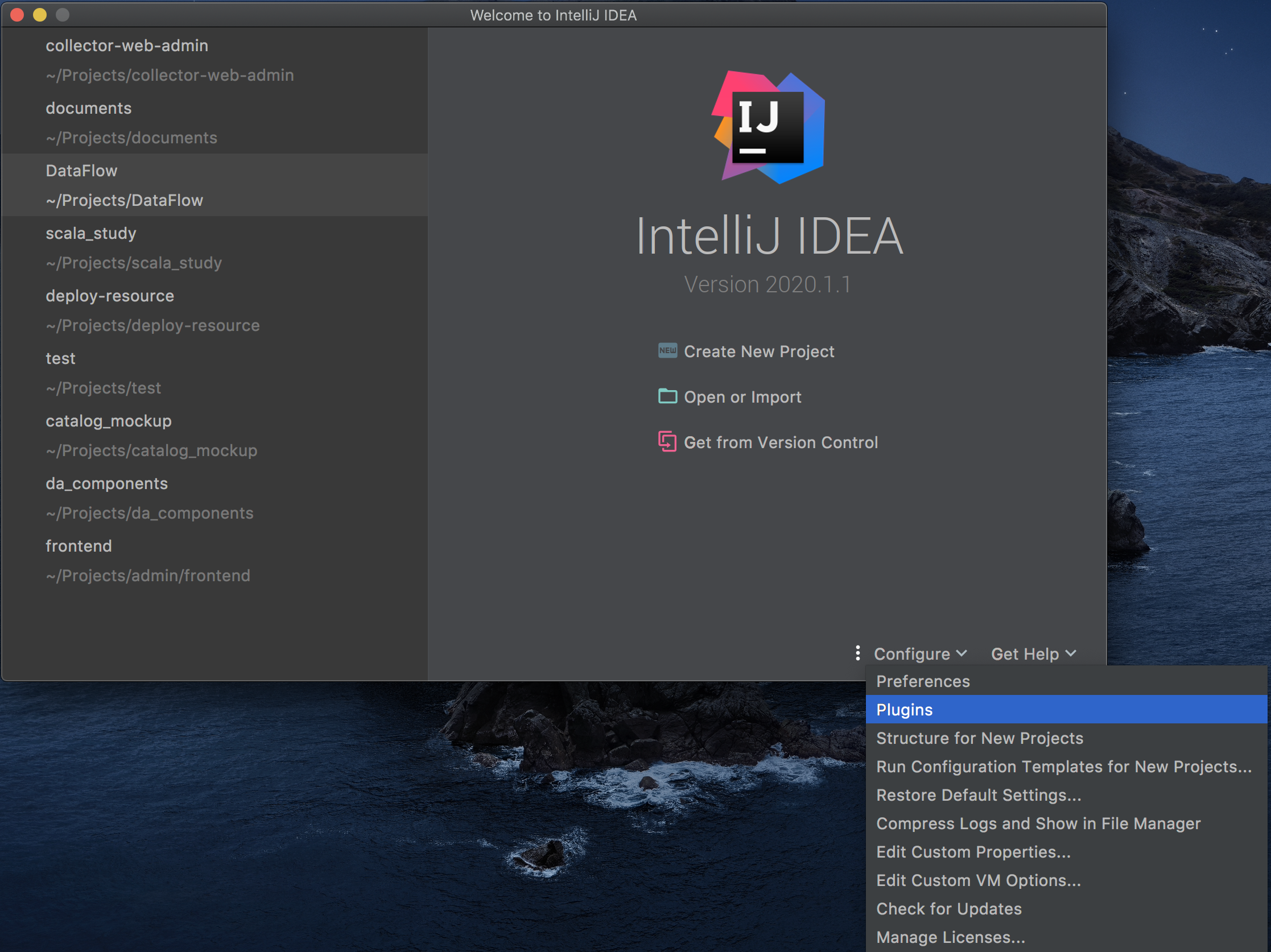 Intellij를 처음 설치 후 첫 실행 시 아래와 같은 화면에서 설치 할 수 있습니다.